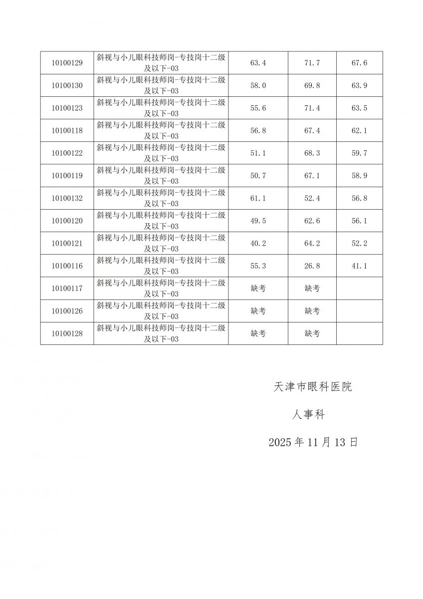 首页>>天津市眼科医院2025年度公开招聘第二批次人事代理制工作人员笔试成绩公示
