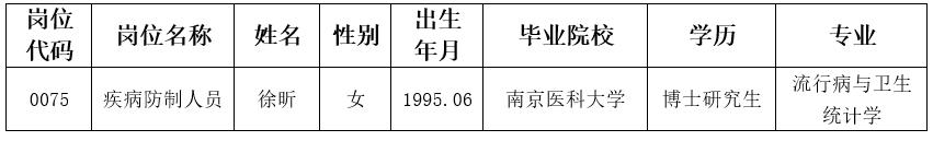 2025年苏州市疾病预防控制中心长期公开招聘博士研究生专业技术人才(0075岗)拟录用公示(第二批)