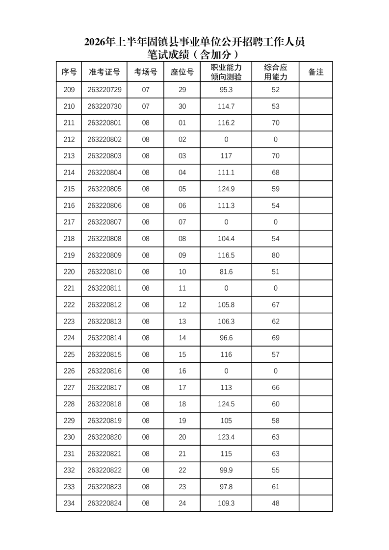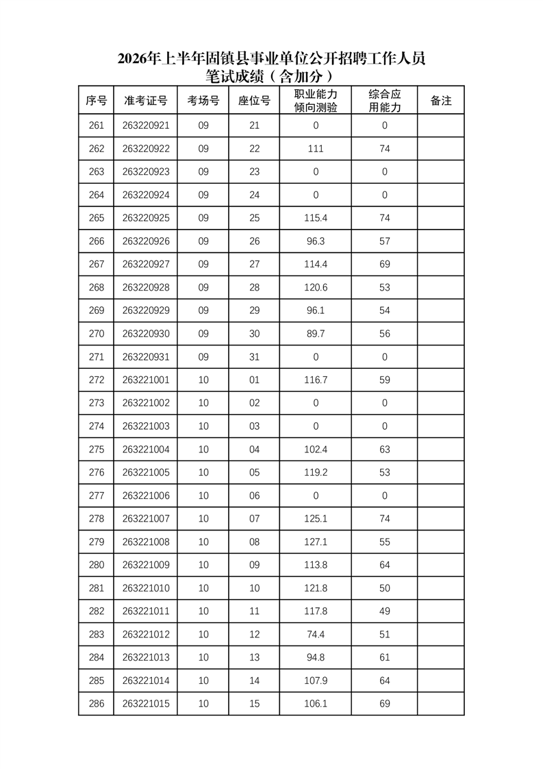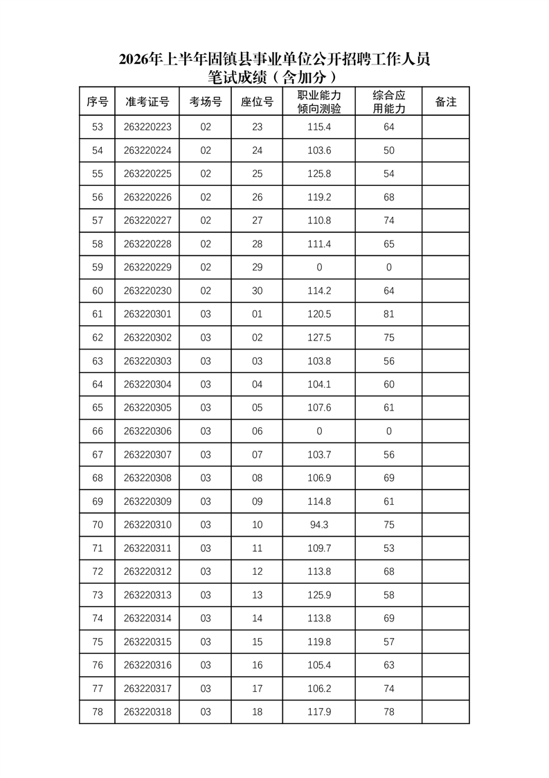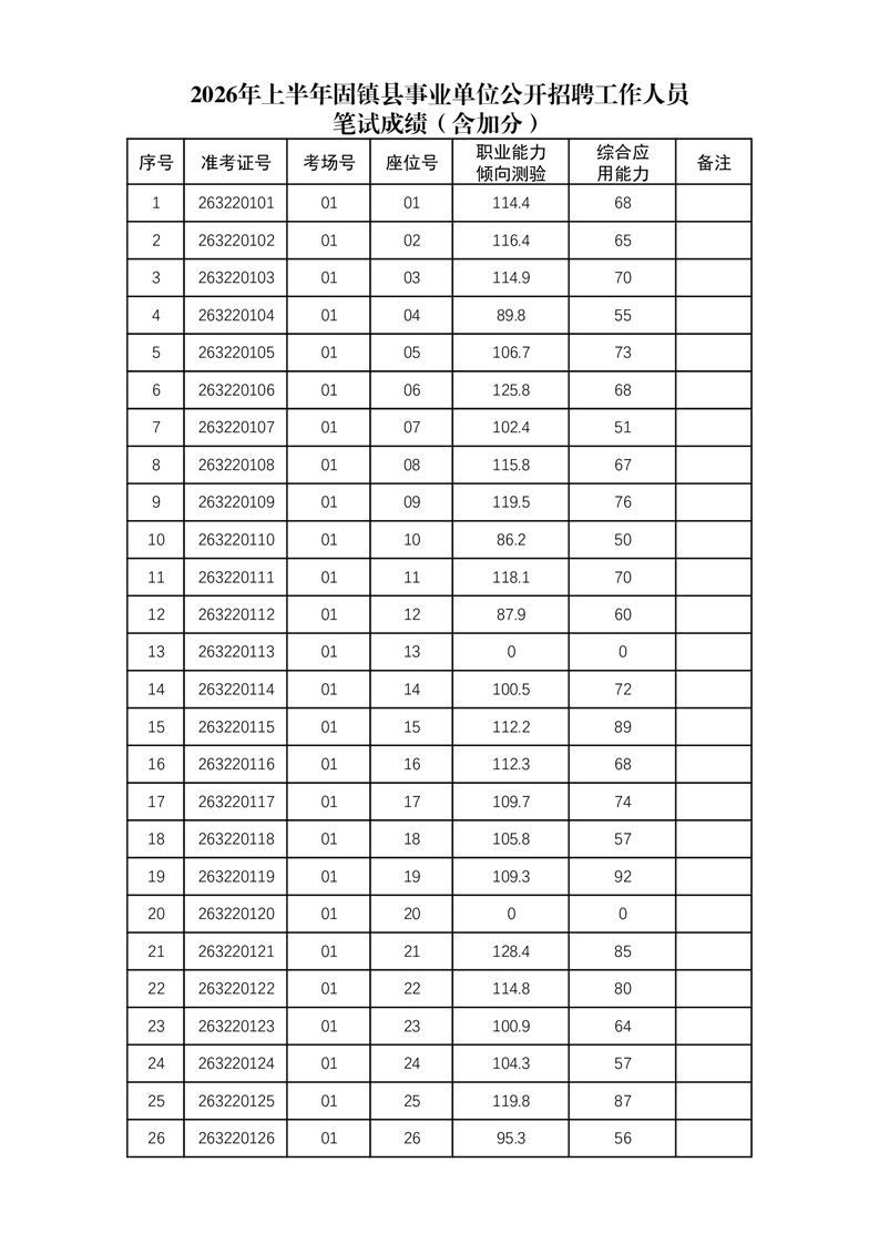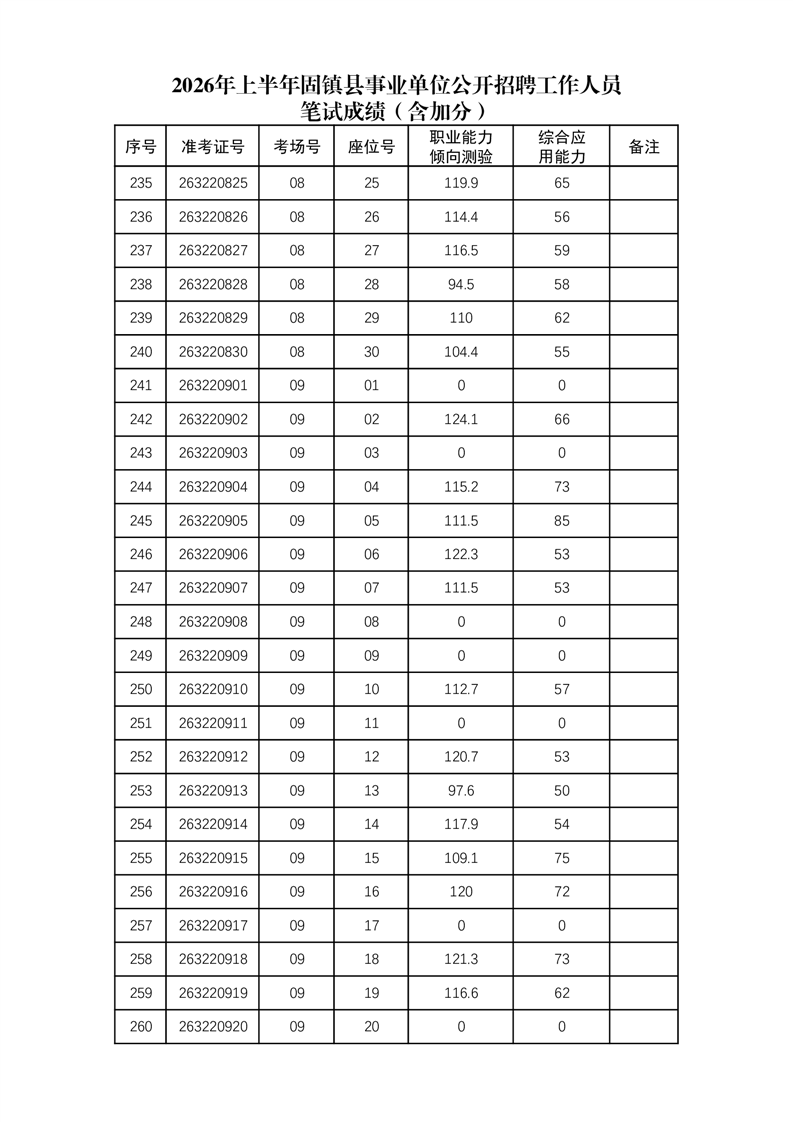2026年上半年固镇县事业单位公开招聘工作人员笔试成绩(含加分)