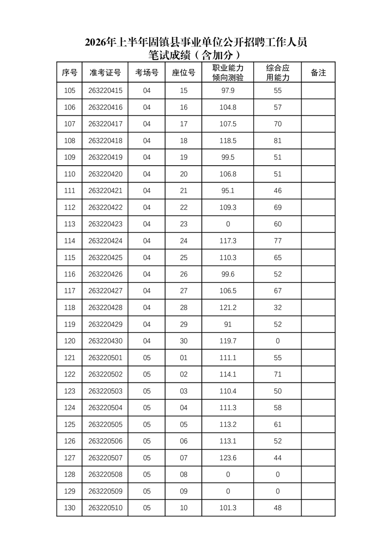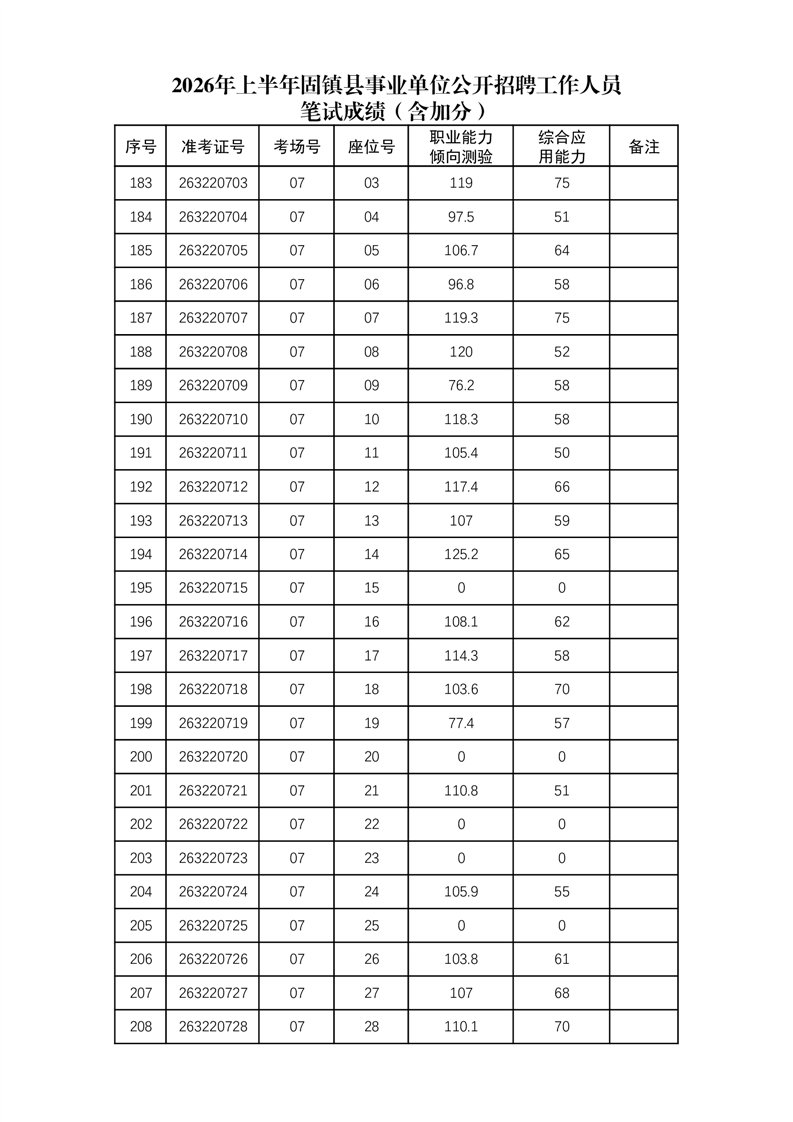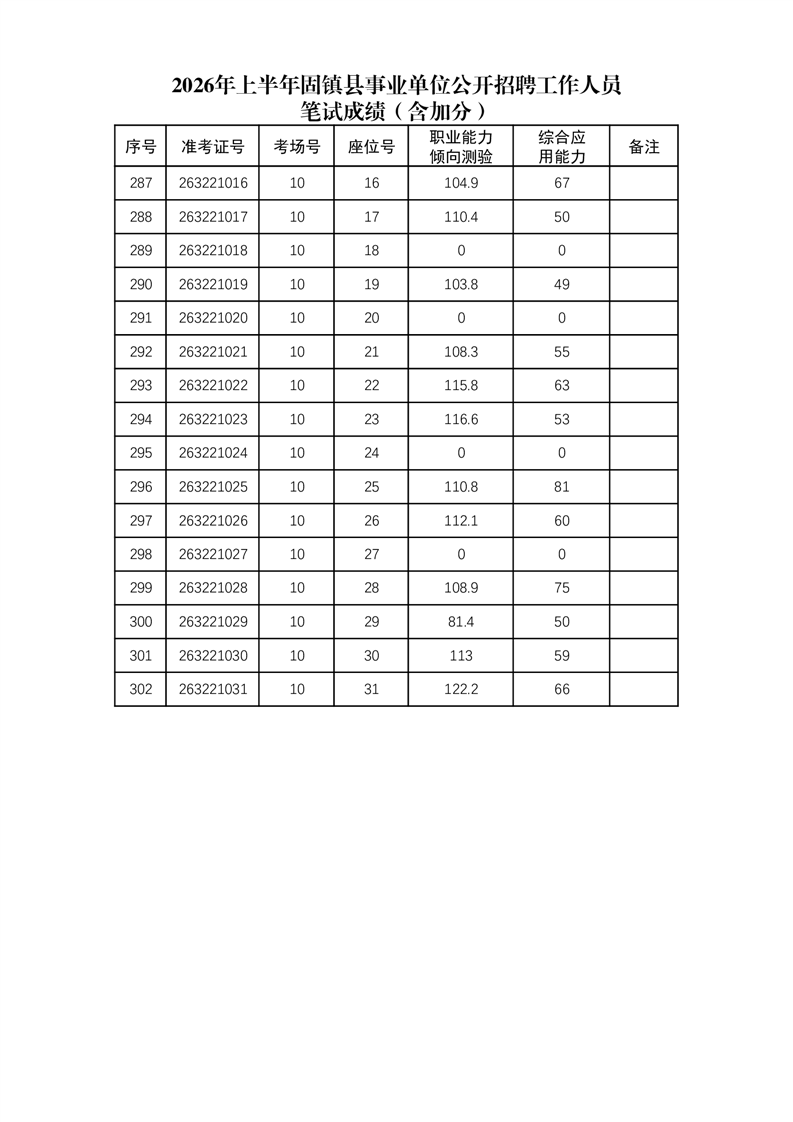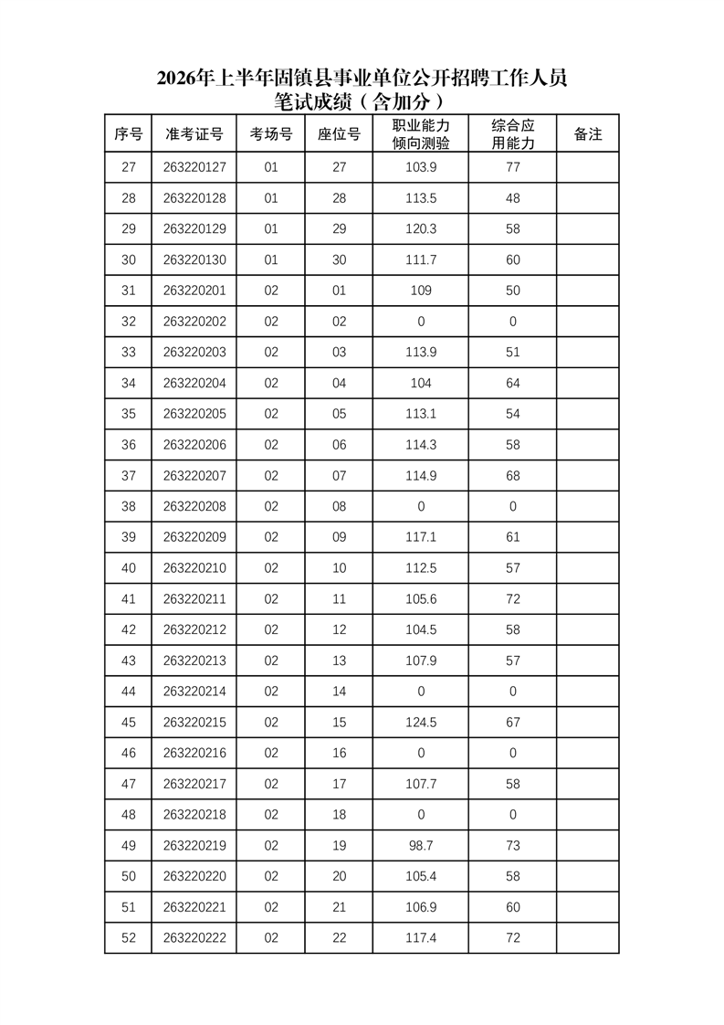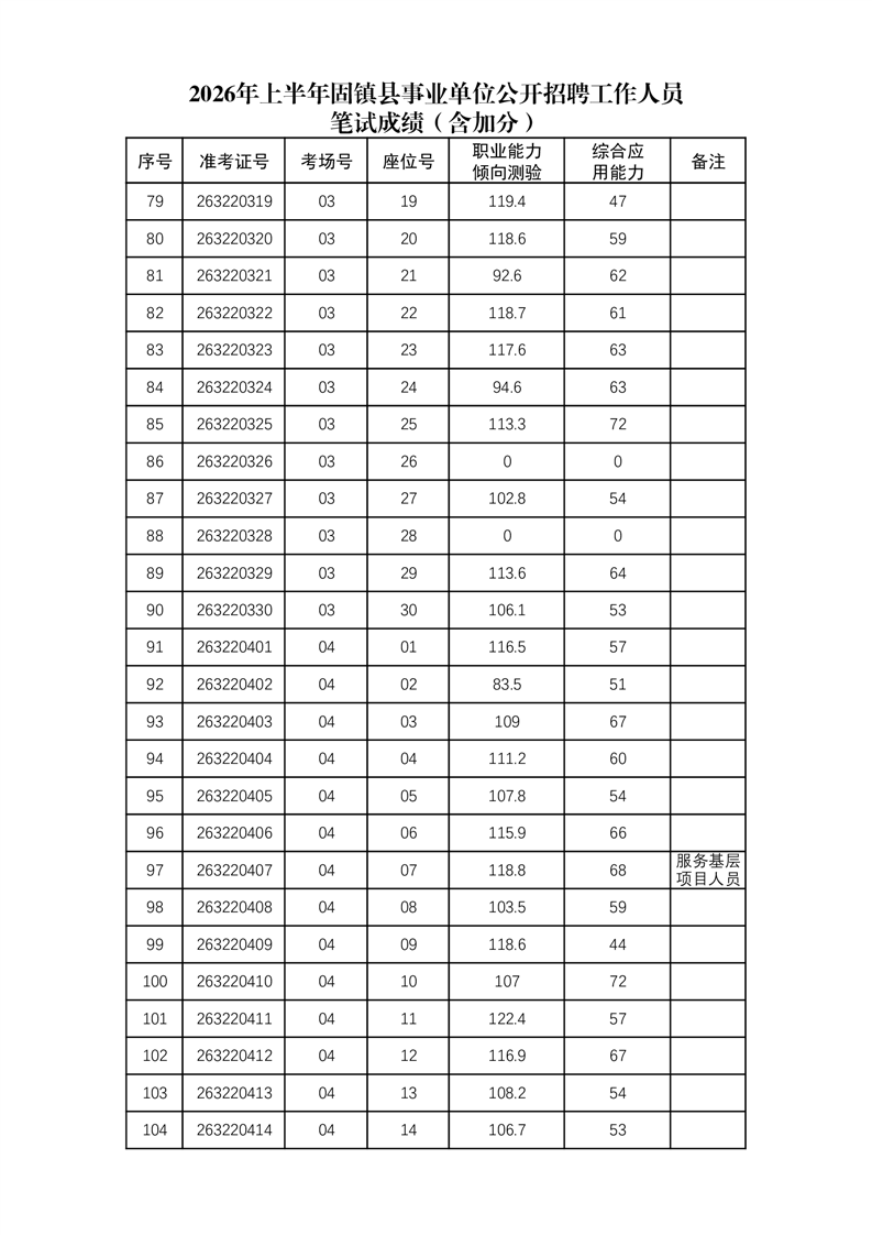 2026年上半年固镇县事业单位公开招聘工作人员笔试成绩(含加分)